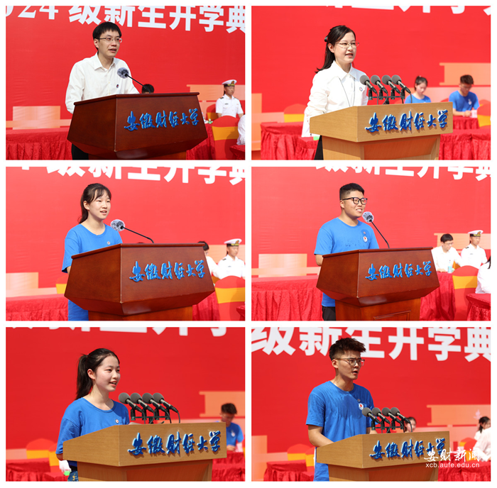 新生入学宣誓将整个典礼推向高潮。“我宣誓:谨记安财校训:诚信博学 知行统一!以赤子之心,筑牢理想信念,厚植家国情怀……”全体新生高声诵读入学誓词,砥砺强国之志,实践报国之行,赓续安财精神,共同书写新时代的辉煌篇章。
