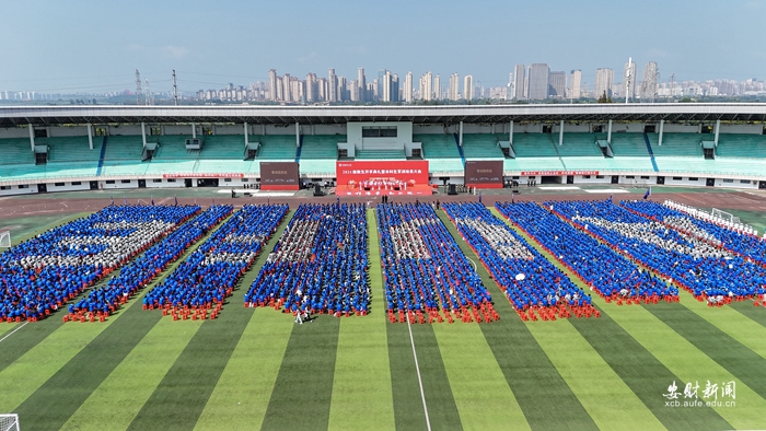 秋光为序启新程,博学笃志谱华章。9月10日,我校隆重举行2024级新生开学典礼暨本科生军训动员大会,6400余名新同学齐聚龙子湖畔,共同踏上追逐梦想的崭新征程。校友代表、中国高等教育学会财经教育分会理事长、对外经济贸易大学原校长施建军教授,军训团团长、中国人民解放军某部军官刘正发,校党委书记虞宝桃,党委副书记、校长朱红军,党委副书记张亚新,党委常委、纪委书记、监察专员武刚,党委常委、副校长宋马林、储德银、赵晓明、王兵出席。全体军训教官、各学院(部)党政负责人、2024级新生辅导员(班主任)和全体新生参加了活动。开学典礼在龙湖东、西校区分别举行。