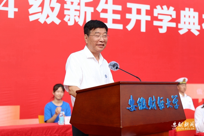 朱红军以“相约安财 从‘新’出发 共赴未来”为题,为2024级新生讲授开学第一课。他热烈欢迎来自全国各地的新同学们加入到安财大家庭。他说,安财之美,在于其悠久的办学历史和深厚的文化底蕴,同学们将在生生不息的文脉传承中赓续精神、砥砺奋进;安财之美,在于其诲人不倦的前辈师者、强师兴教的育人理念,同学们将在桃李不言的师德风范中求真求知、潜心向学;安财之美,在于其舒适宜人的校园环境、持续完善的培养服务体系,同学们将在润物无声的育人氛围中启智润心、憧憬未来。新的人生征程即将启航,朱红军向2024级新生提出了三点期待:一是挚诚于国,志存高远,追求人生价值的至臻;二是铭德于心,兼容并包,涵养人性品行的至善;三是竭诚于学,博学雅致,探寻求知问学的至美。他希望同学们不驰于空想、不骛于虚声,勇往直前、自强精进,用奋斗擦亮人生,让梦想照进现实,书写无愧于这个伟大时代的华彩篇章。面对即将开始的军训生活,朱红军希望同学们能听从指挥、刻苦训练,以饱满的热情、高昂的斗志完成各项训练任务,培育爱国精神,提升国防意识,练就健康体魄,磨练意志品格,努力成为祖国建设的栋梁之才。