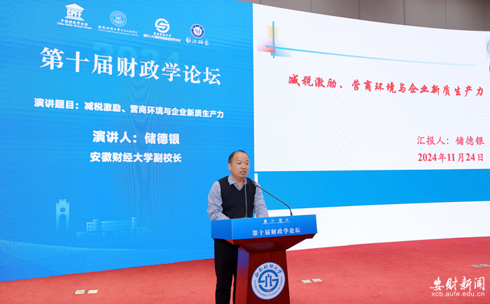 储德银演讲的主题为“减税激励、营商环境与企业新质生产力”。他指出,企业新质生产力水平提升是实现经济高质量发展的关键举措,更是扎实推进中国式现代化进程的内在诉求。在地方财政矛盾加剧,宏观税负持续下降,减税空间日趋减少的背景下,以减税为导向的政策激励面临现有财政资源难以维系与政策扶持必不可少的两难抉择。在这一背景下,减税政策由普惠性转向结构性,从追求数量规模转向注重提质增效,能够更好地在发展新质生产力和财政可持续性间取得平衡。此外,减税激励叠加营商环境优化还能够对企业新质生产力水平提升产生显著的政策协同效应。