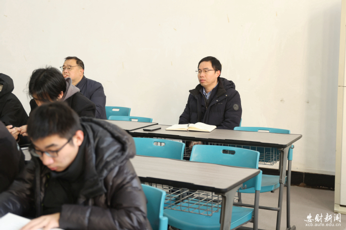 校党委副书记张亚新听取了金融学院欧鲲老师讲授的《外汇交易原理与业务》课程;校党委常委、纪委书记、监察专员武刚听取了艺术学院王伟老师讲授的《跨界思维与创意》课程;校党委常委、副校长宋马林听取了统计与应用数学学院孙颀老师讲授的《数学分析基础(下)》课程;校党委常委、副校长储德银听取了会计学院陈小君老师讲授的《会计分岗实训》课程;校党委常委、副校长赵晓明听取了法学院朱志强老师讲授的《职业生涯规划》课程和文学院王金玲老师讲授的《外国新闻传播史》课程;校党委常委、副校长王兵听取了马克思主义学院陈杰老师讲授的《马克思主义与社会科学方法论》课程。