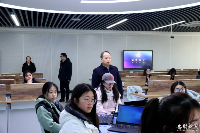 校党委书记、校长朱红军听取了马克思主义学院李苗苗老师讲授的《马克思主义基本原理》课程。他强调,思政课教师要具备数字化思维,涵育自身数字素养,积累数字思政相关素材,丰富课堂教学内容;要创新课堂教学方式,充分利用新媒体新技术,大力发挥“云思政”育人优势,善于依托智慧教室、网络空间,充分运用AI技术赋能思政课教学。他指出,新时代思政课教师肩负着立德树人、铸魂育人的重要使命,不仅要传播好知识,讲深、讲透、讲活道理,更要直面学生心灵,达到沟通心灵、启智润心、激扬斗志的效果,为培养具有理想信念、家国情怀、跨界思维、创新精神、实践能力的安财新人提供强大的思政引领力。