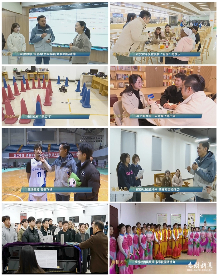 直播团队先后来到经管实验室、智能汽车实验室、图书馆、食堂、体育馆等多个场所,了解学校经管、理工实验教学情况,感受图书馆浓厚学习氛围,揭秘食堂特色美食,体验青藤剧社、花鼓灯艺术团、合唱团文化生活。学校相关职能部门负责人、任课教师重点对学科专业、人才培养、招生情况等进行介绍。我校学子在线分享“学习秘籍”“校园特色美食”“社团乐趣”等,生动展现了安财校园生活和精神风貌,让广大网友跟随直播镜头“云”游安财。