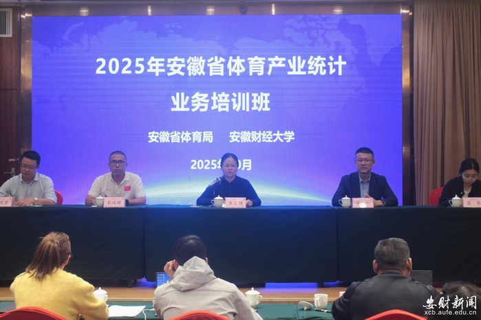 10月16-17日,由安徽省体育局主办、安徽财经大学承办的2025年全省体育产业统计业务培训班在蚌埠成功举办。省体育局经济处副处长朱雪梅、体育教学部主任、体育产业管理与发展研究院院长姜同仁出席开班仪式。来自全省16个地市的体育产业统计工作负责人及业务骨干、省体育产业重点研究基地研究团队成员、深圳市维度数据科技股份有限公司业务人员参加培训。