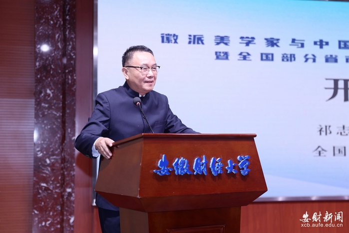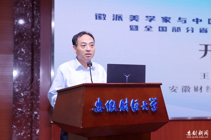 王兵首先代表学校向出席开幕式的各位领导、全国知名专家学者和参会人员表示了真诚的谢意。他在致辞中围绕“学科引领、人才强校、育人为本、科研兴校、开放办学”五个方面,介绍了学校学科专业建设、人才培养工作的发展历程和取得的成绩。他表示,本次会议要紧紧围绕深入学习贯彻习近平文化思想和习近平总书记在文化传承发展座谈会上的重要讲话精神,立足于中国式现代化的历史背景,探讨徽派美学现象及其对中国美学的贡献,为建构具有中国特色的美学思想体系提供理论支持和智力支撑。