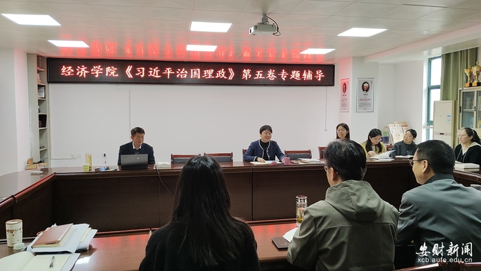 为深入学习贯彻习近平新时代中国特色社会主义思想,引导经济学院全体师生深刻理解学习《习近平谈治国理政》第五卷,10月20日上午,校关工委副主任杨烨以“汉字发展演变与中华文化特性”为题在经济学院进行专题辅导。