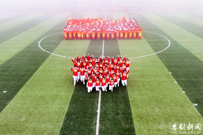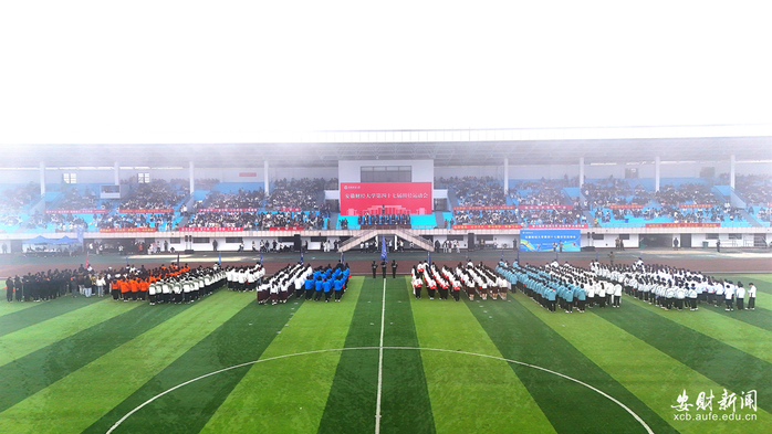 国旗护卫队护送着鲜艳的五星红旗率先步入会场,动作精准、步伐铿锵,尽显威武英姿。紧随其后的各学院运动员方阵,穿戴整齐、步履稳健,青春的脸庞上洋溢着蓬勃朝气。会计学院680名学子献上的大型团体操《舞颂华章》以青春律动演绎古今风采,成为全场焦点。红扇舞动间,阵型时而如长龙腾跃,时而似江河奔流,展现中华文明深厚底蕴;队形变幻模拟政策传导与市场脉动,诠释财经人服务国计民生的专业使命;节奏转换间,数据流动与智能算法造型交替呈现,彰显财经智慧与数字技术的深度融合。此外,活力四射的健美操、动感十足的街舞及飒爽英姿的女子匕首操等表演相继登场,全方位展现了安财学子昂扬奋进的青春风貌。
