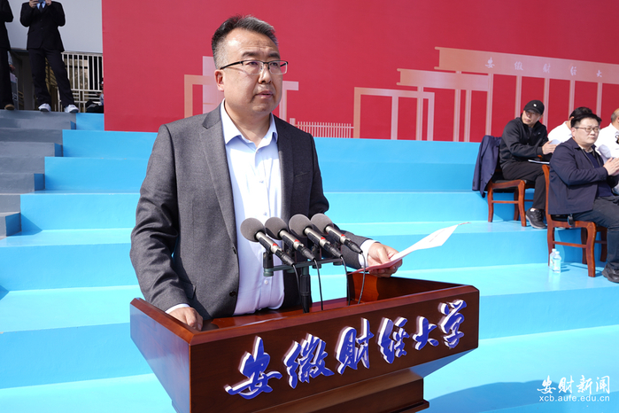 朱红军致开幕辞。他指出,长期以来学校将体育育人置于人才培养突出位置,坚守“健康第一、体教融合、以体育人”教育理念,推动体育设施建设与体育文化发展协同并进,将体育精神深度融入人才培养全过程,有效激发了师生的运动热情,为师生的全面健康发展筑牢基础。他强调,田径运动会作为学校体育教学成果的一次集中展示,也是师生精神风貌的一次全面检阅。运动比赛的意义,远不止于赛场上的胜负,更在于每一次自我超越迸发的生命力、淬炼的坚韧与不言弃,在协作中凝聚的合力与信任,把“我”变成“我们”。朱红军表示,今年是学校“十四五”收官、“十五五”布局的关键之年,希望能以本次运动会为契机,将赛场上的拼搏精神与协作意识转化为推动学校发展的强大动力,奋力谱写建设具有鲜明财经特色的多科性高水平大学新篇章。