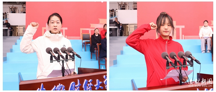 开幕式上,体育部教师王文琦、经济学院学生朱亦雨分别代表裁判员和运动员庄严宣誓。